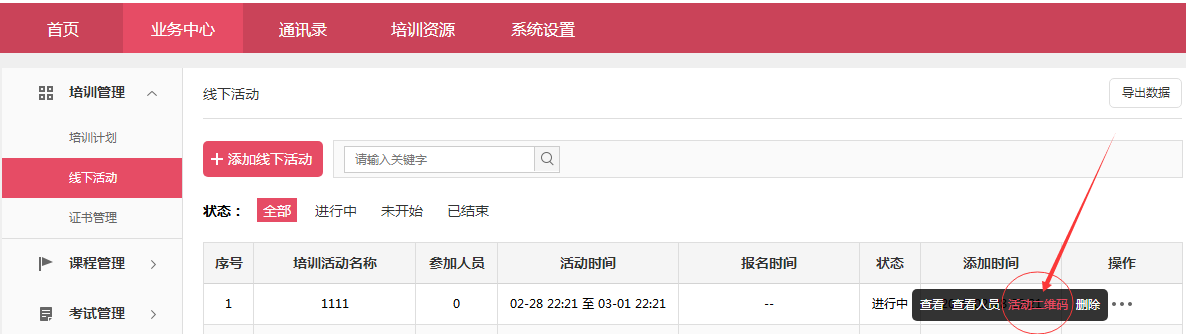 1、活动二维码:指的是该线下活动,生成一个二维码,供学员扫码查看活动,决定是否参加