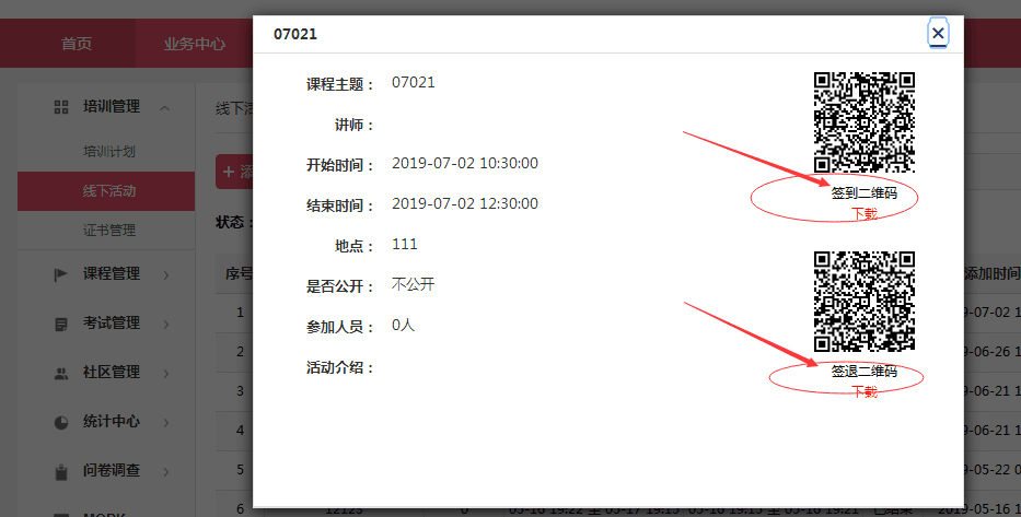 3、签退二维码:指的是该线下活动需要安排学员签退,并统计和分析数据的